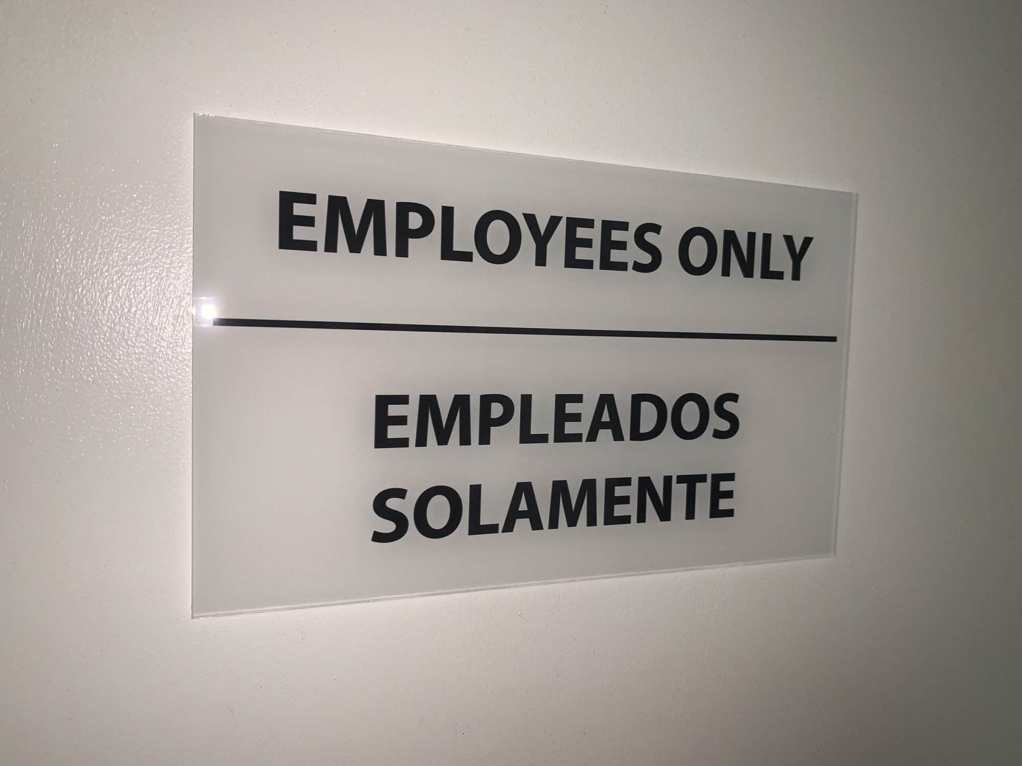 - Acrylic: Known for its clarity and modern look, acrylic office signs are perfect for creating a professional environment. We offer clear acrylic signs, PMS match painted signs, and full-color printed signs.